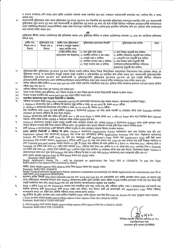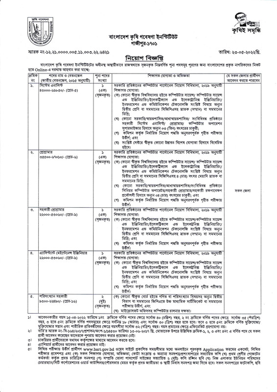 বাংলাদেশ কৃষি গবেষণা ইনস্টিটিউট নিয়োগ বিজ্ঞপ্তি BARI Job circular 2022