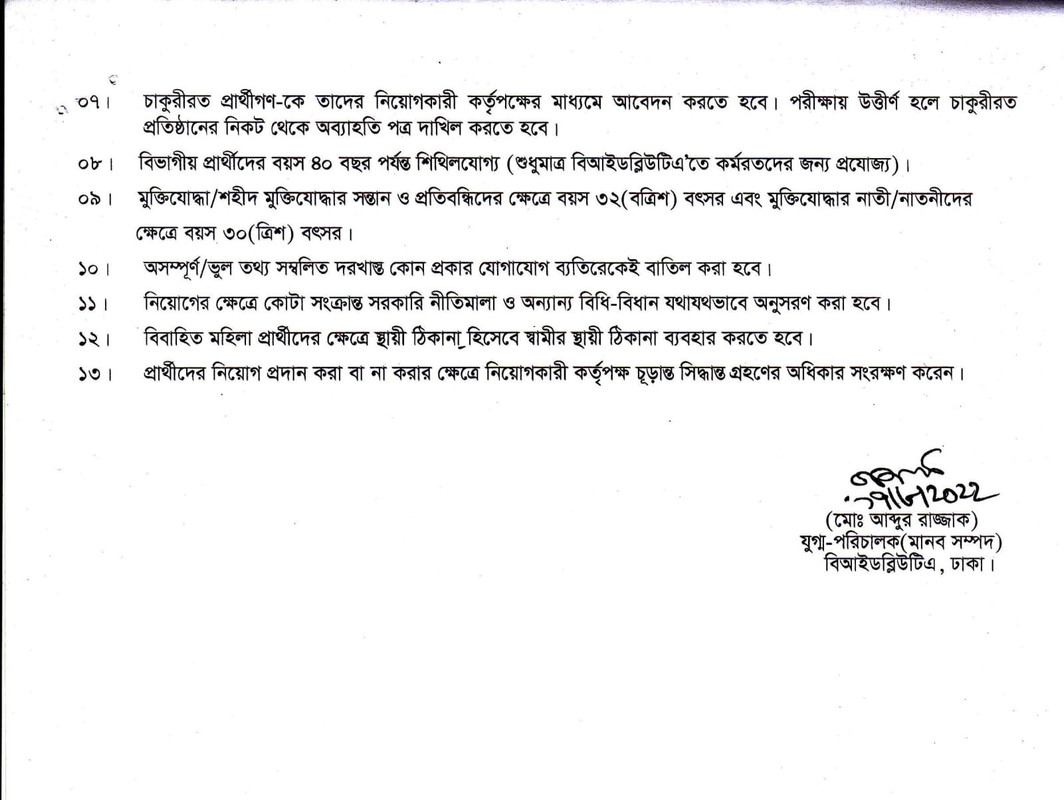 আবেদনের নিয়ম: আগ্রহী প্রার্থীরা অনলাইনে www.jobsbiwta.gov.bd ওয়েবসাইটের মাধ্যমে আবেন করতে পারবেন।
