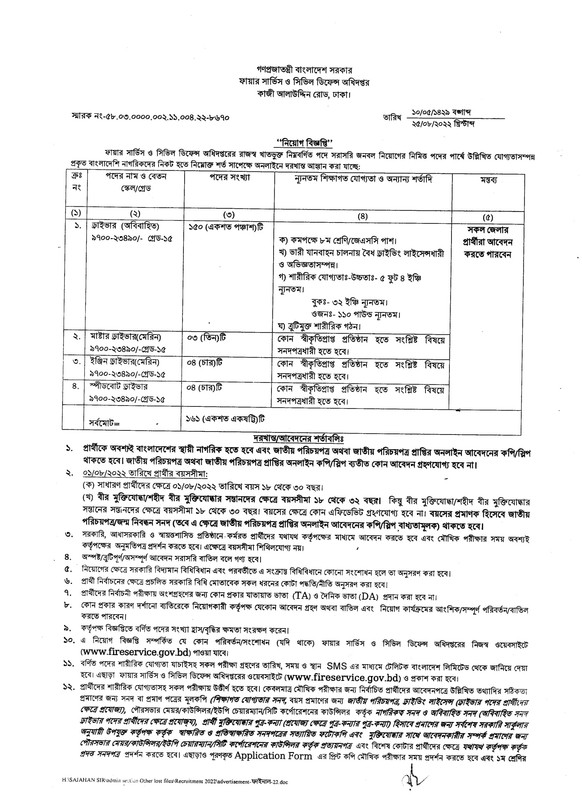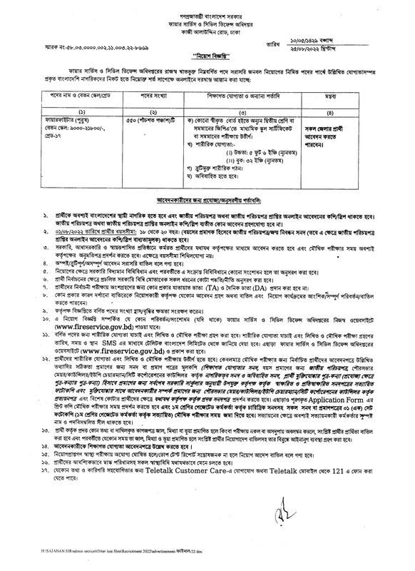 ফায়ার সার্ভিস ও সিভিল ডিফেন্স নিয়োগ বিজ্ঞপ্তি – Fire Service Job Circular 2022